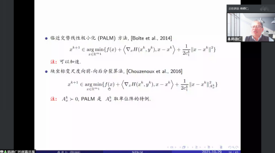 2021年10月29日,国家杰青、教育部数学类专业教指委秘书长、北京航空航天大学数学科学学院院长韩德仁教授为我院师生做了题为《非凸非光滑优化问题的一般惯性临近交替极小化方法》的精彩学术报告,报告由数学与统计学院院长陈义安教授主持,龙宪军教授、孙祥凯教授、曾静副教授、李高西副教授、李耿华博士以及重庆交通大学数统学院彭再云教授等老师以及研究生参加了此次学术报告会。