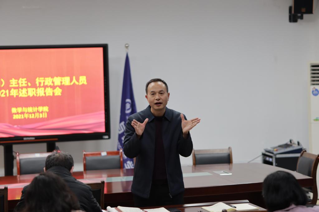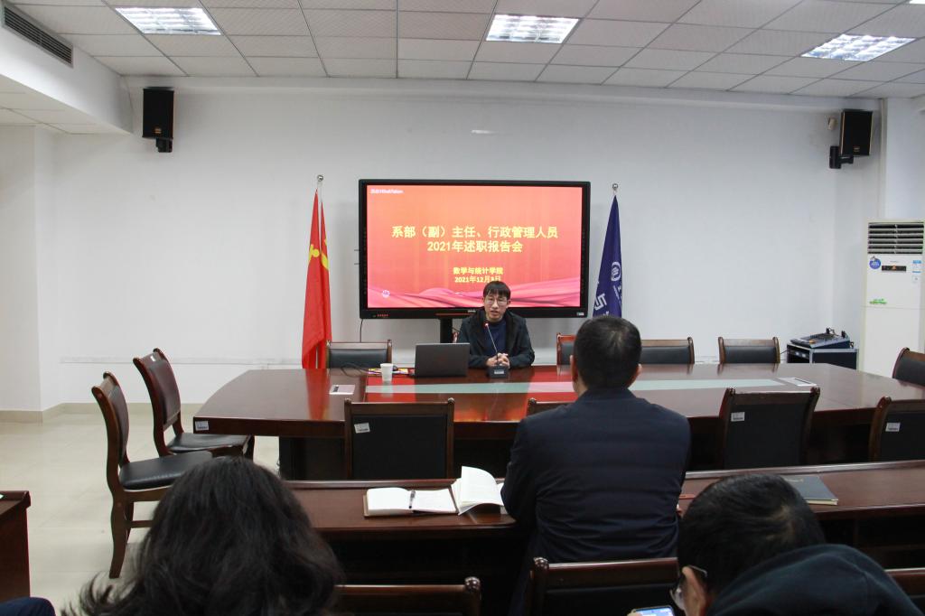 2021年12月3日,数学与统计学院召开系部(副)主任、行政管理人员2021年述职报告会,对一年来的工作进行总结回顾,对来年工作进行展望规划,会议由学院党委书记唐玺主持,学院班子成员,系部负责人、行政管理人员参加。