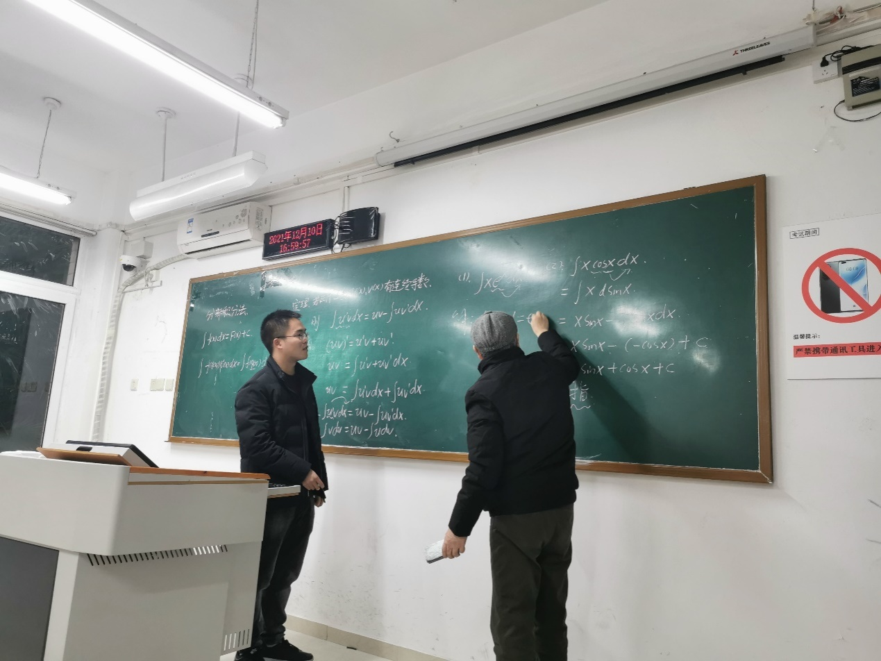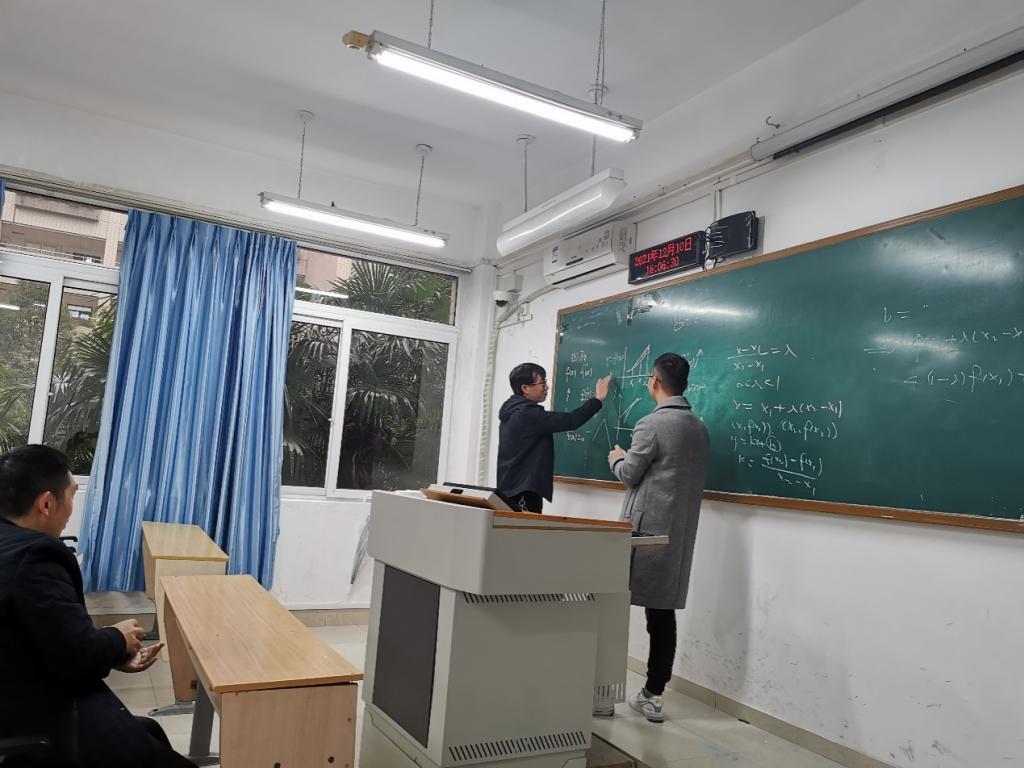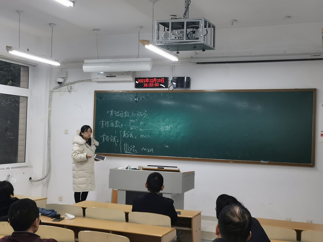 随后应用数学系2021年新进老师秦杰、鞠玉君、易红、杨灵兵、岳云飞五位博士轮流进行了课堂现场教学展示。丁宣浩教授、陈修素教授、袁德美教授等系部老师从教学内容重难点、教学方法技巧、板书设计、仪表仪态等方面存在的问题和不足进行了现场指导和经验分享。两位校督导充分肯定了此次教研活动,并对新教师提出了很多宝贵建议。