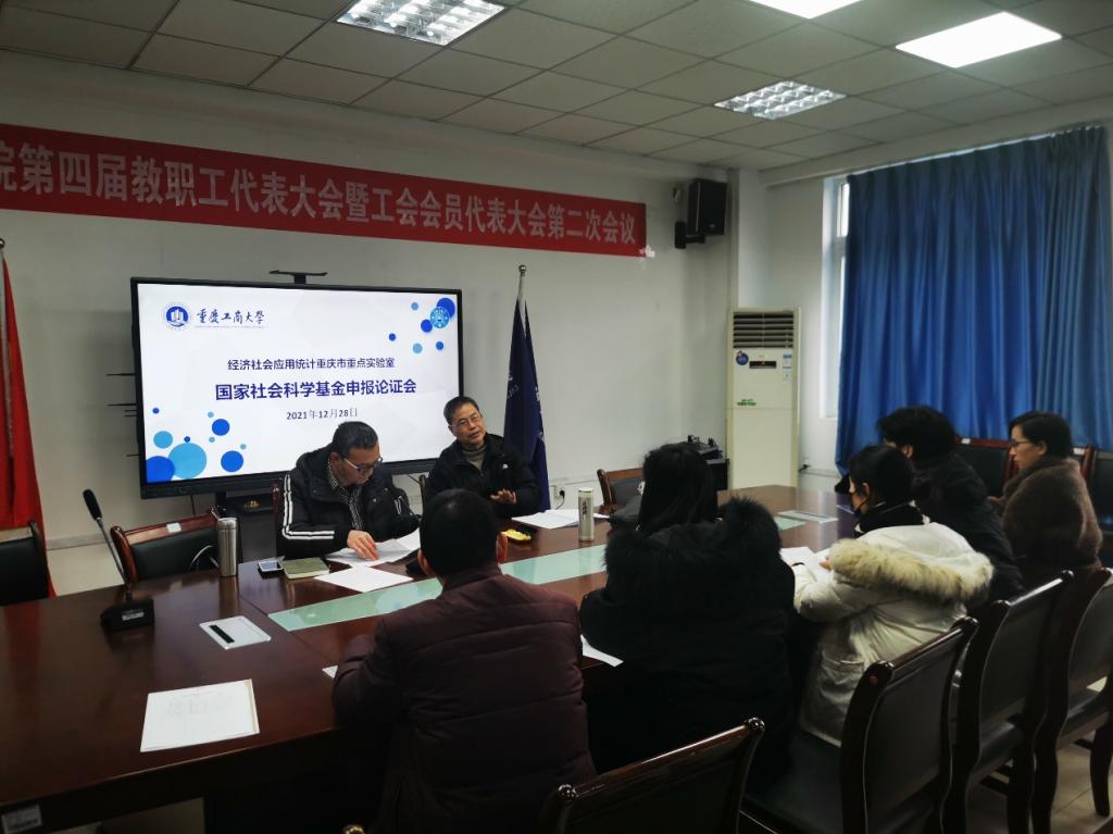 12月28日,经济社会应用统计重庆市重点实验室召开2022年度国家社科基金项目申报论证会,数学与统计学院教授、博士生导师胡桂华教授和赵培信教授到场指导2022年国家社科项目选题申报,为本次申报基金的教师传经送宝。学院科研骨干、青年教师参与了论证会。