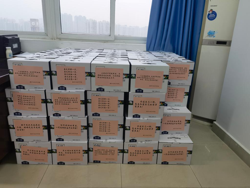 考研在即,校园里随处可见备战考研的同学,考研氛围丝毫不减,天气转凉,为了同学们有着更饱满的备考状态以及更健康的备考心态,数统学院精心准备了牛奶慰问品,表达学院的深切关怀和慰问,并于12月10日发放完毕。
