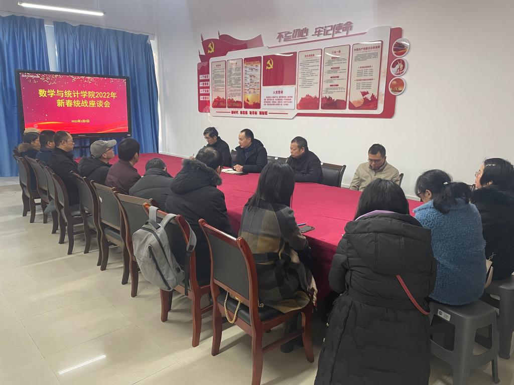 1月9日上午,数学与统计学院召开了2022年新春统战工作座谈会,学院党委书记唐玺、院长陈义安、副院长叶勇、副院长龙宪军以及学院各民主党派和统战团体人士代表参加了座谈会,会议由叶勇副院长主持。