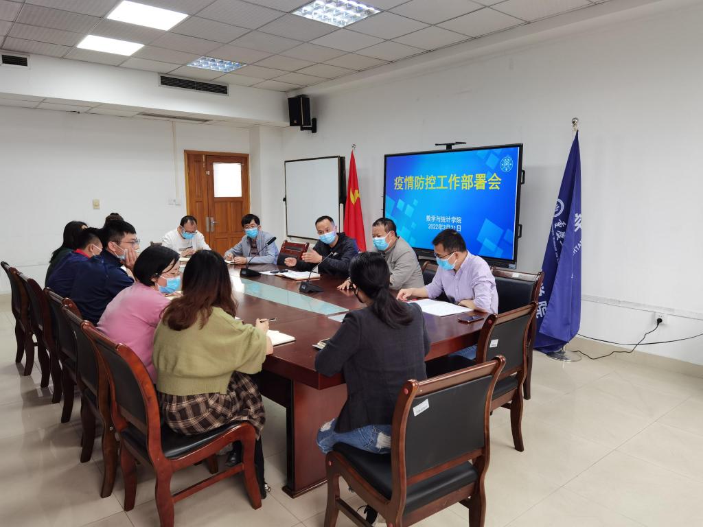 3月21日上午,数学与统计学院在80602会议室召开疫情防控工作部署会,学院领导班子及所有行政人员参加了会议,会议由学院党委书记唐玺主持。