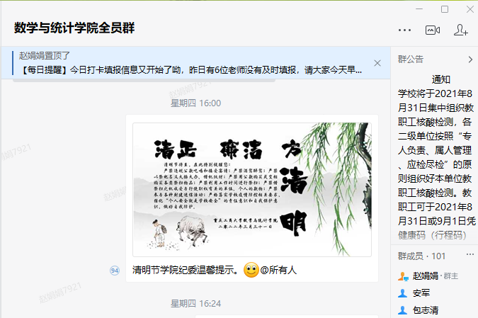 学院党委书记唐玺补充道清明节正值新冠肺炎疫情防控关键时期,疫情面前领导干部、党员干部要起好带头作用,严把安全防线、守住纪律底线,坚决防止违纪违法问题发生,确保节日期间风清气正。