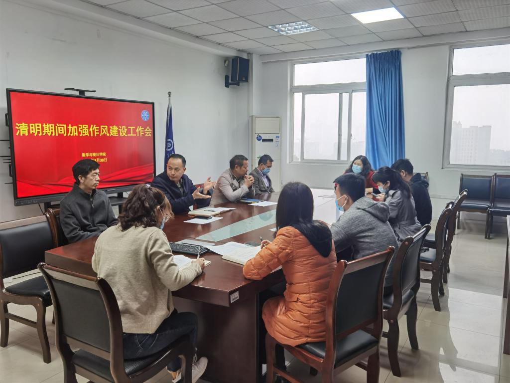 3月30日下午,数学与统计学院召开清明节加强作风建设工作会,学院领导班子、专职组织员、行政人员、党员代表参加了会议。