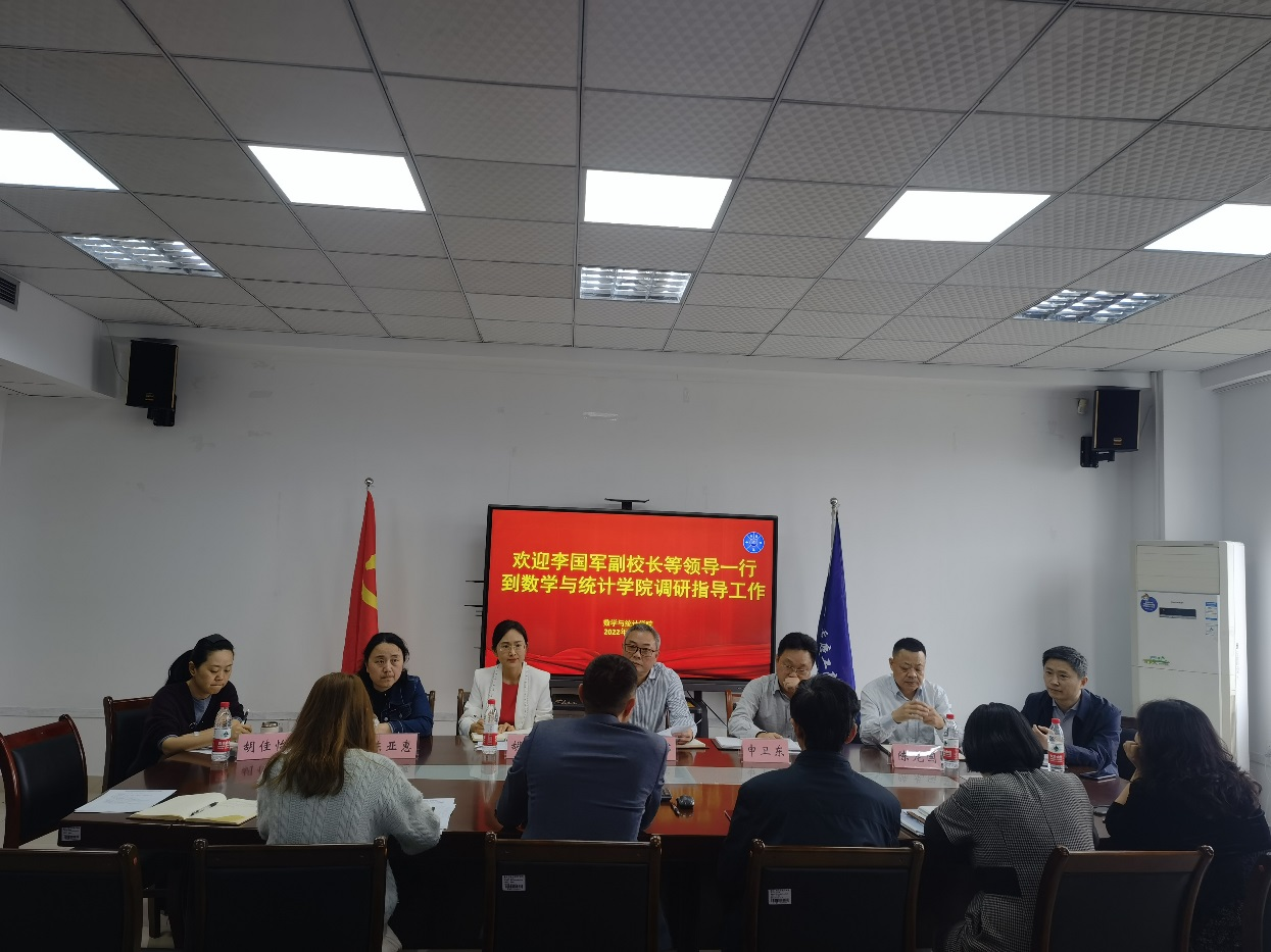 5月17日下午,副校长李国军带领学生处、团委负责人和心理中心老师莅临数学与统计学院调研指导心理健康教育工作。学院党委书记唐玺、院长陈义安、副院长叶勇、全体辅导员参加了会议。