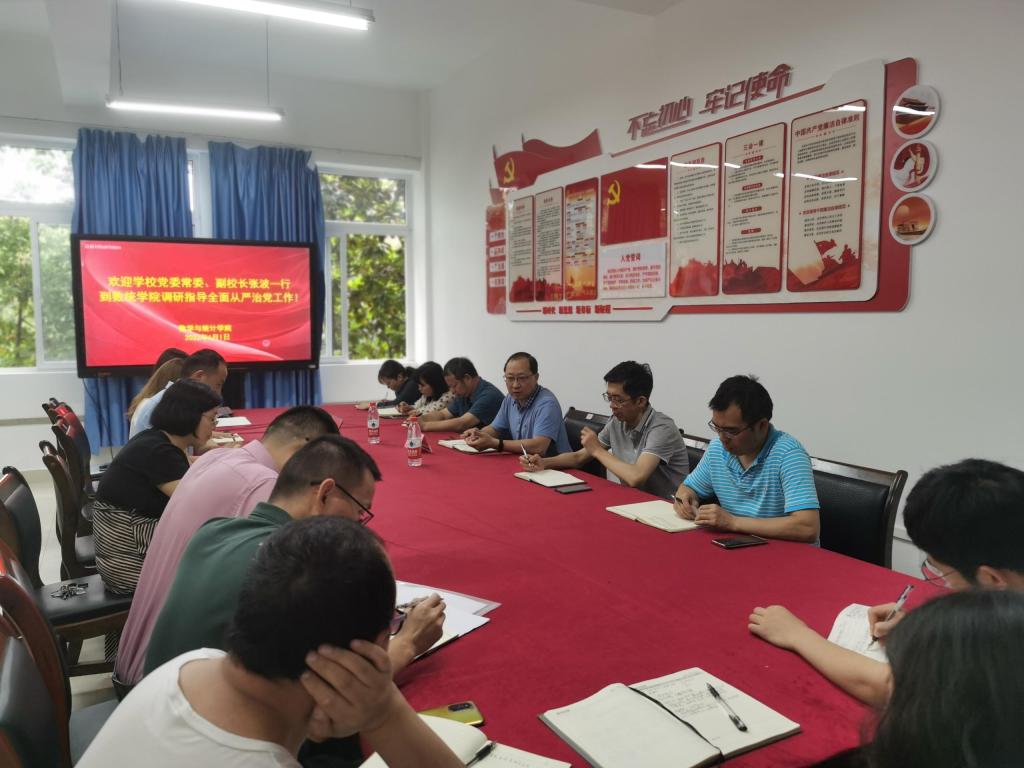 6月1日上午,校党委常委、副校长张波到数学与统计学院调研指导全面从严治党工作,数学与统计学院全体班子成员、支部书记、科室负责人、行政管理人员及辅导员参加了座谈会。
