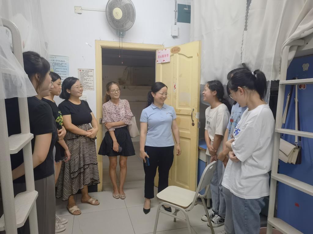 在南16A2留校学生寝室,潘焱书记与留校学生进行了深入的交流,详细了解了同学们暑期的学习、生活等情况,仔细听取了同学们各方面的需求,并叮嘱同学们在学习的同时,严格遵守学校暑期留宿规定,确保人身安全和财产安全。她表示,暑期留校学习不仅是一个积累知识的过程,更是磨炼意志的重要阶段,希望同学们明确目标,珍惜时间,在暑期学有所获。