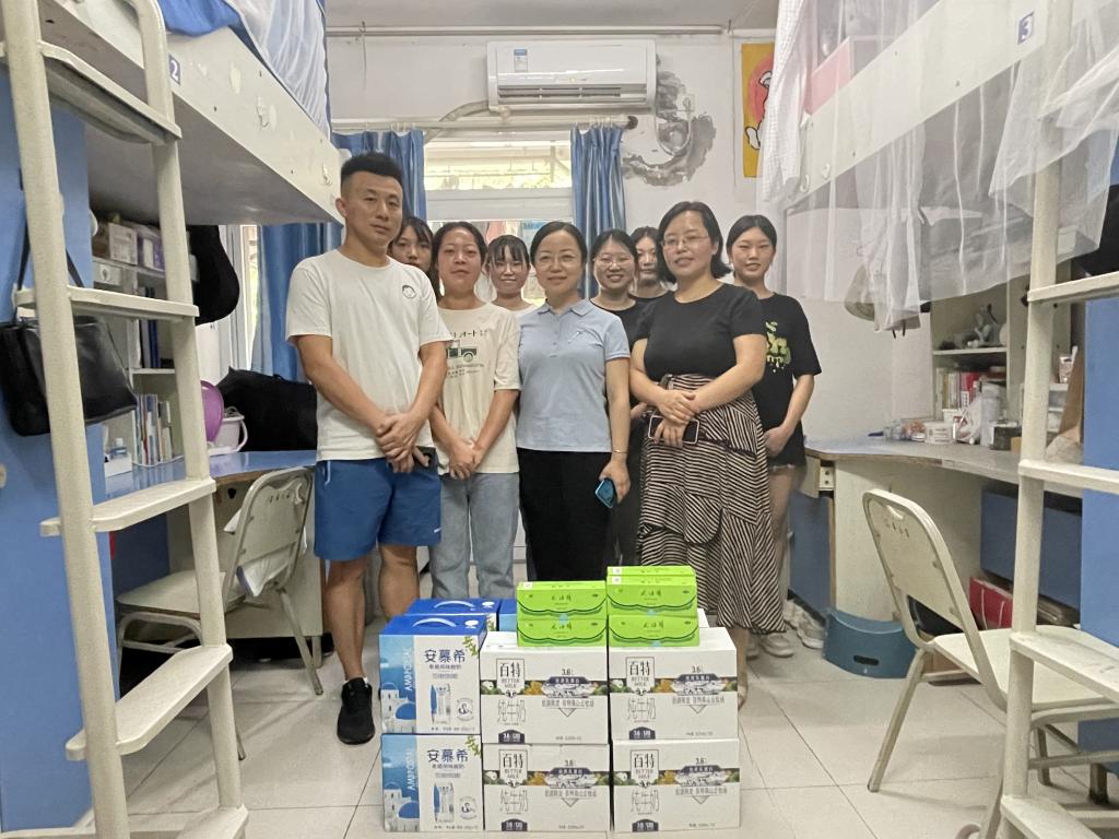 7月22日,数学与统计学院党委书记潘焱带领学工队伍的老师们深入宿舍,慰问暑期留校学生,为他们送上防暑降温的物品。