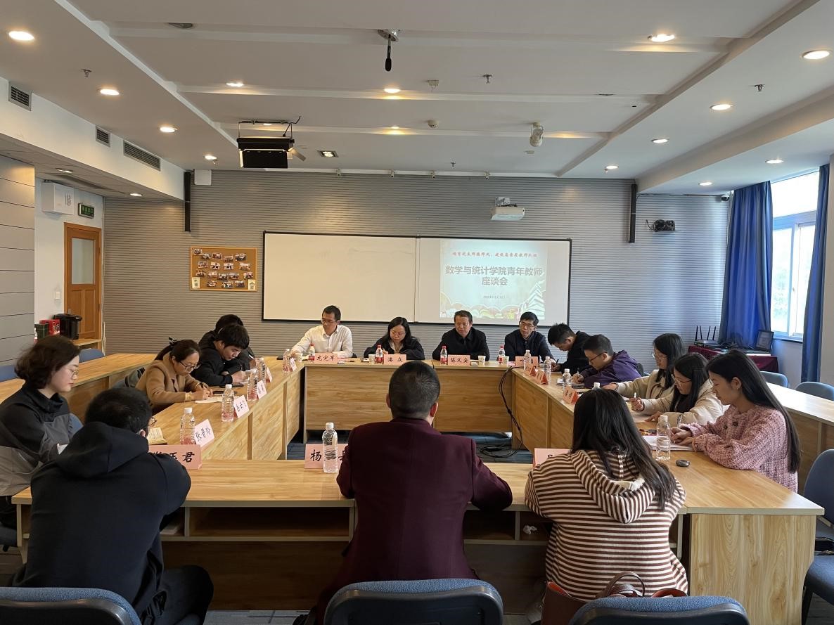 3月9日下午,数学与统计学院在启智楼80412C会议室举行青年教师座谈会,学院党委书记潘焱、院长陈义安、副院长叶勇、龙宪军,以及学院近三年新进教师参加了座谈会,会议由潘焱主持。