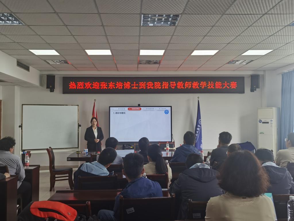 会上,张东培老师对我院教师进行了全面的指导。首先她做了精彩的示范教学,随后针对老师们的问题,深入解读了大赛的评分标准,并指出教学内容、教学组织要相互关联,强调了如何联动解决每个部分的难点。随后,张老师结合自己的教学设计,从课程概述、教学内容体系、课程思政设计、教学过程与方法、教学案例、信息化教学、教姿教态等方面提出了很好的建议。现场互动交流热烈,张老师一一地为老师们答疑解惑,老师们纷纷表示受益匪浅。