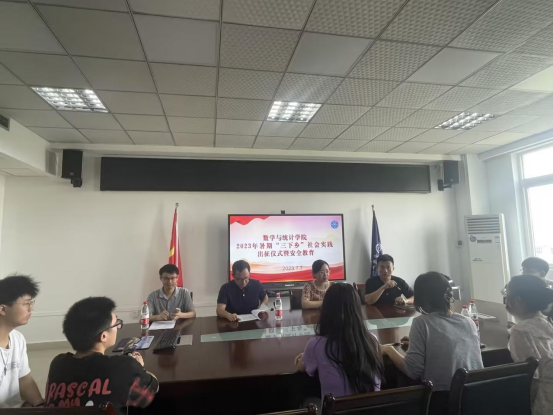 7月7日下午,数学与统计学院2023年暑期“三下乡”社会实践活动出征仪式在启智楼8602顺利举行,学院党委书记潘焱、党委副书记吉杲、分团委书记吴卫、指导老师郭盛亮博士及实践团队11名成员参与此次出征仪式。