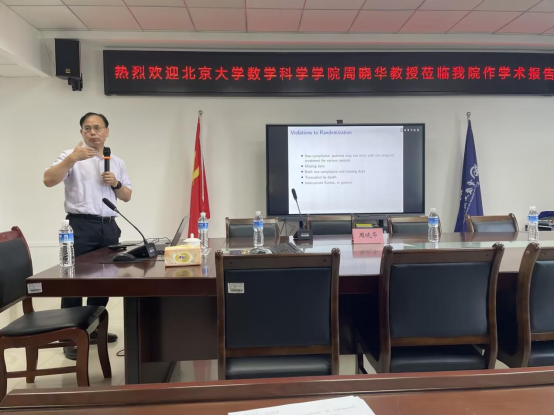 9月6日上午,北京大学数学科学学院周晓华教授应邀为77779193永利集团数学与统计学院的师生作了题为《Some Statistical Methods in Causal Inferences and Diagnostic Medicine》的高水平学术报告。学术报告由数学与统计学院院长陈义安教授主持,龙宪军副院长、胡雪梅教授、胡桂华教授、杨宜平教授、杨炜明教授、詹毅教授、孙祥凯教授等骨干老师和统计专业的研究生参加了报告会。